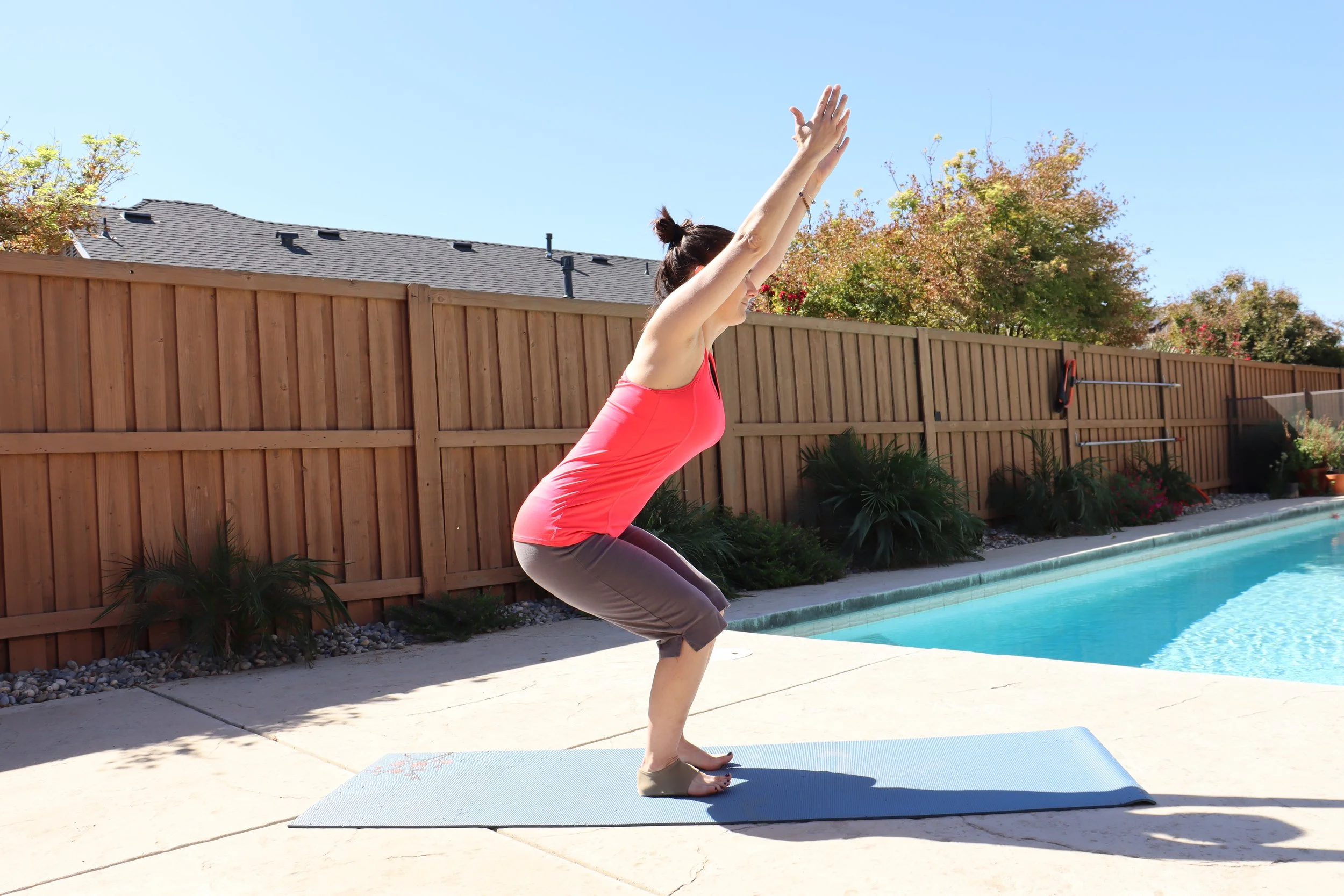 Chair Pose strengthens the legs and core muscles while helping you practice an everyday movement. The transition to and from a seated position can pose a risk for losing balance and injury.