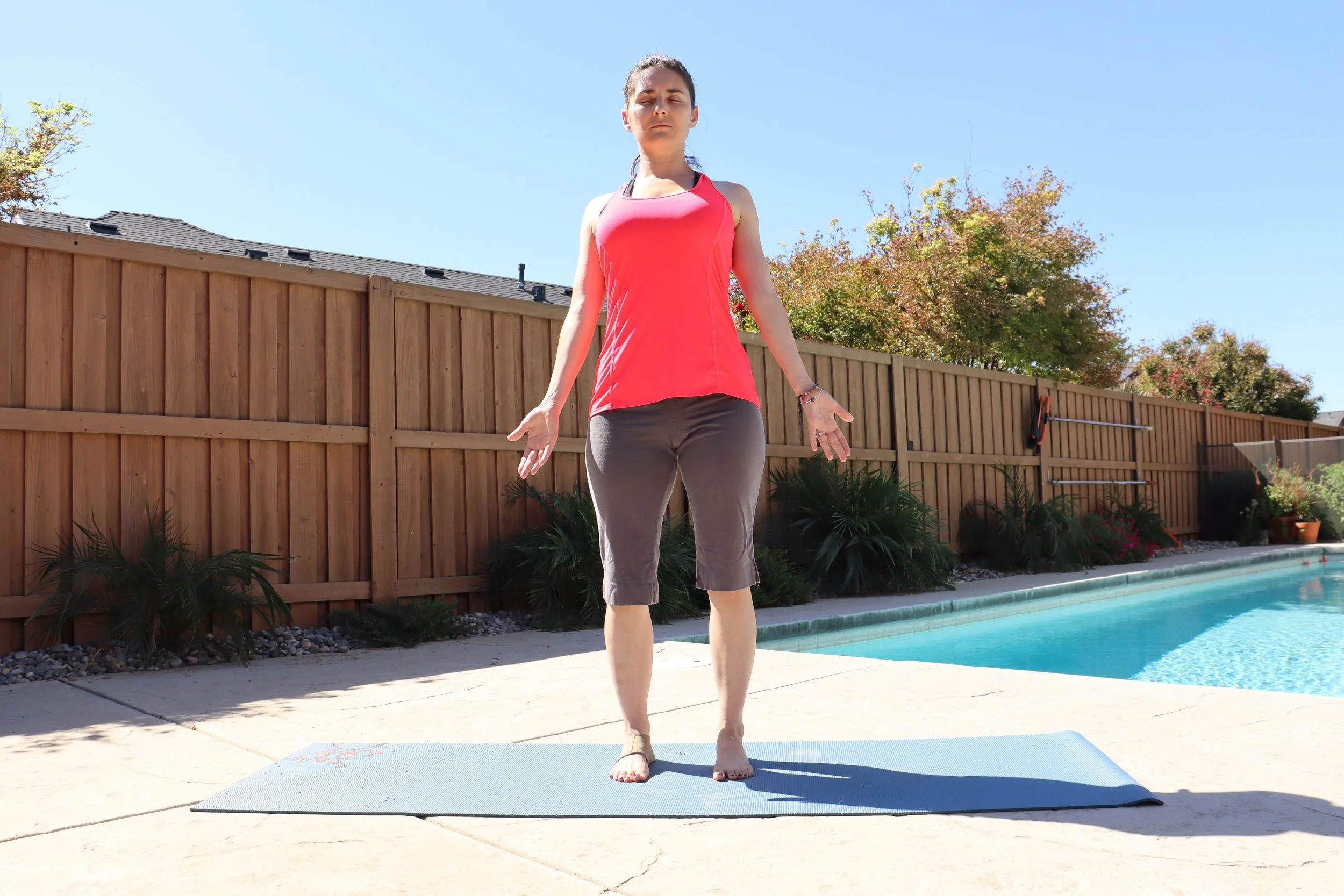 In Mountain Pose you can see asymmetries. Use a wall, mirror, or take a picture to feel or see where you are uneven